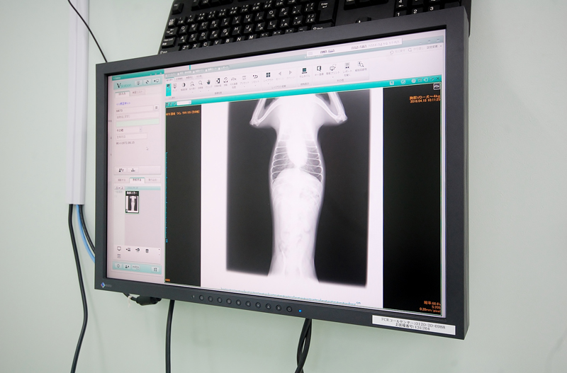 レントゲンの撮影を行い、画像をデジタル処理してPCモニターで確認することができます。